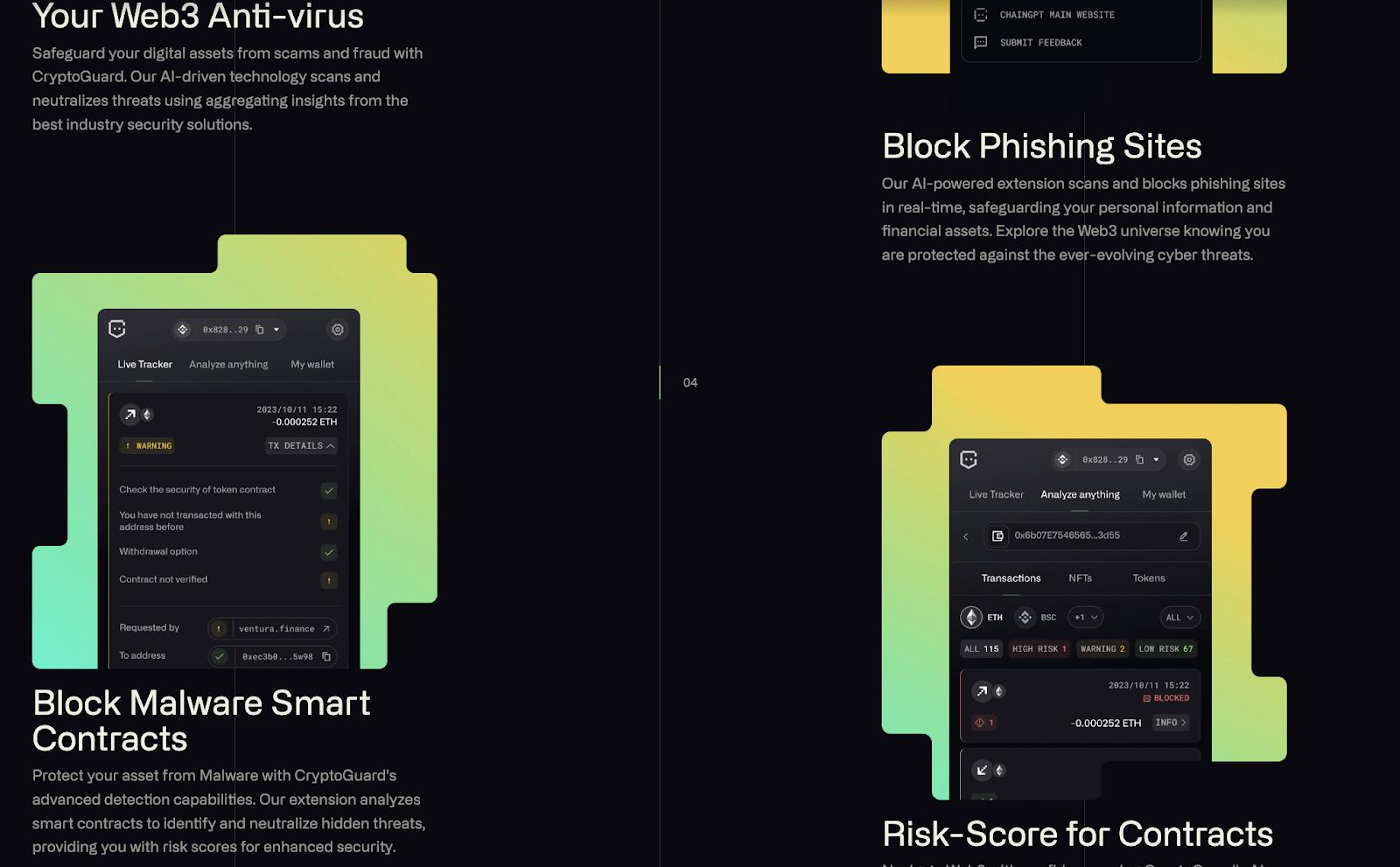 - CryptoGuard: garante transações de criptomoedas seguras como um agregador de segurança
