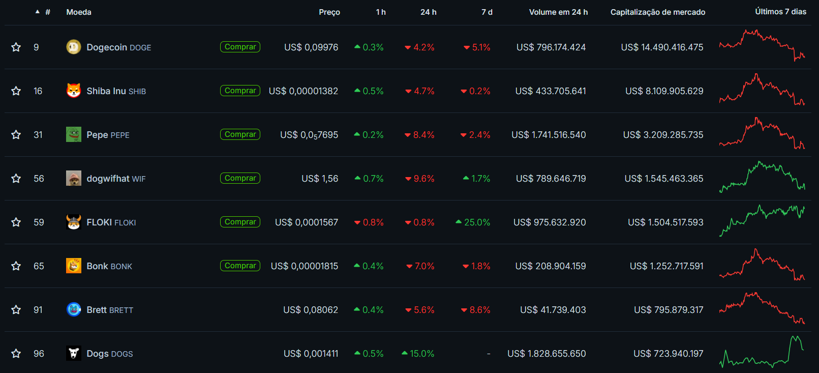 Apesar de ainda serem as maiores memecoins em valor de mercado, outros ativos como Pepe, Dogwifhat e BONE estão atraindo cada vez mais destaque e capital. Além disso, a blockchain Solana tem feito frente ao Ethereum, sendo amplamento utilizada para a criação de novas moedas deste tipo.