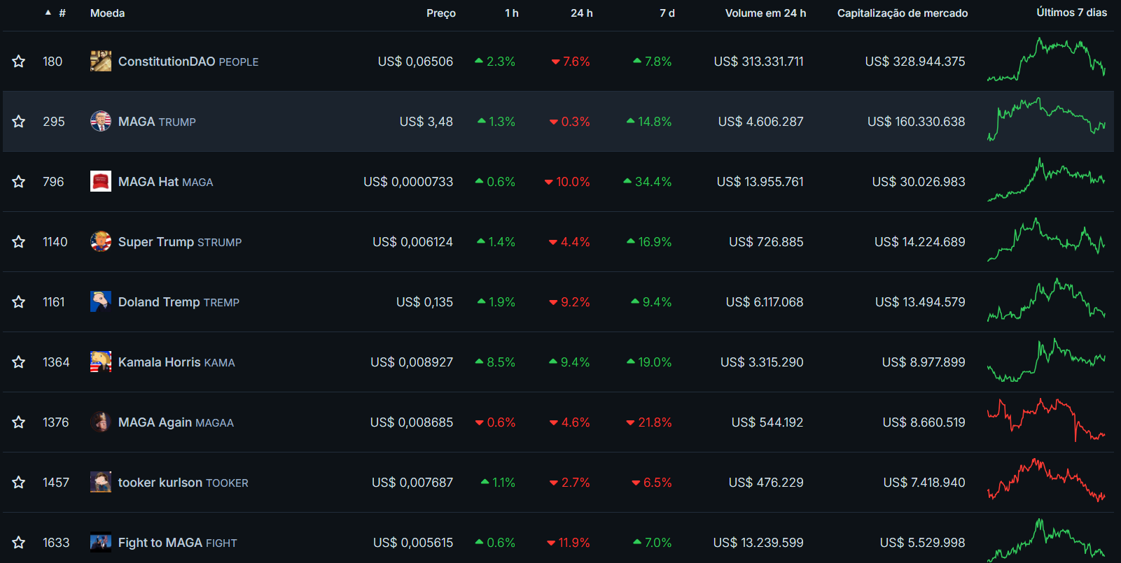 Além disso, tem se observado uma criação de setores dentro deste universo. Por exemplo, diversas memecoins foram criadas com temas relacionadas as eleições presidenciais dos Estados Unidos. Esses ativos já são enquadrados como PolitiFi.