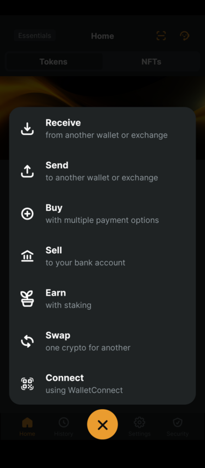 Se quiser comprar criptomoedas, você pode utilizar serviços de pagamento no aplicativo, como MoonPay ou Banxa. Isso é mais conveniente do que passar pelo longo processo de criação de uma conta em uma exchange centralizada.