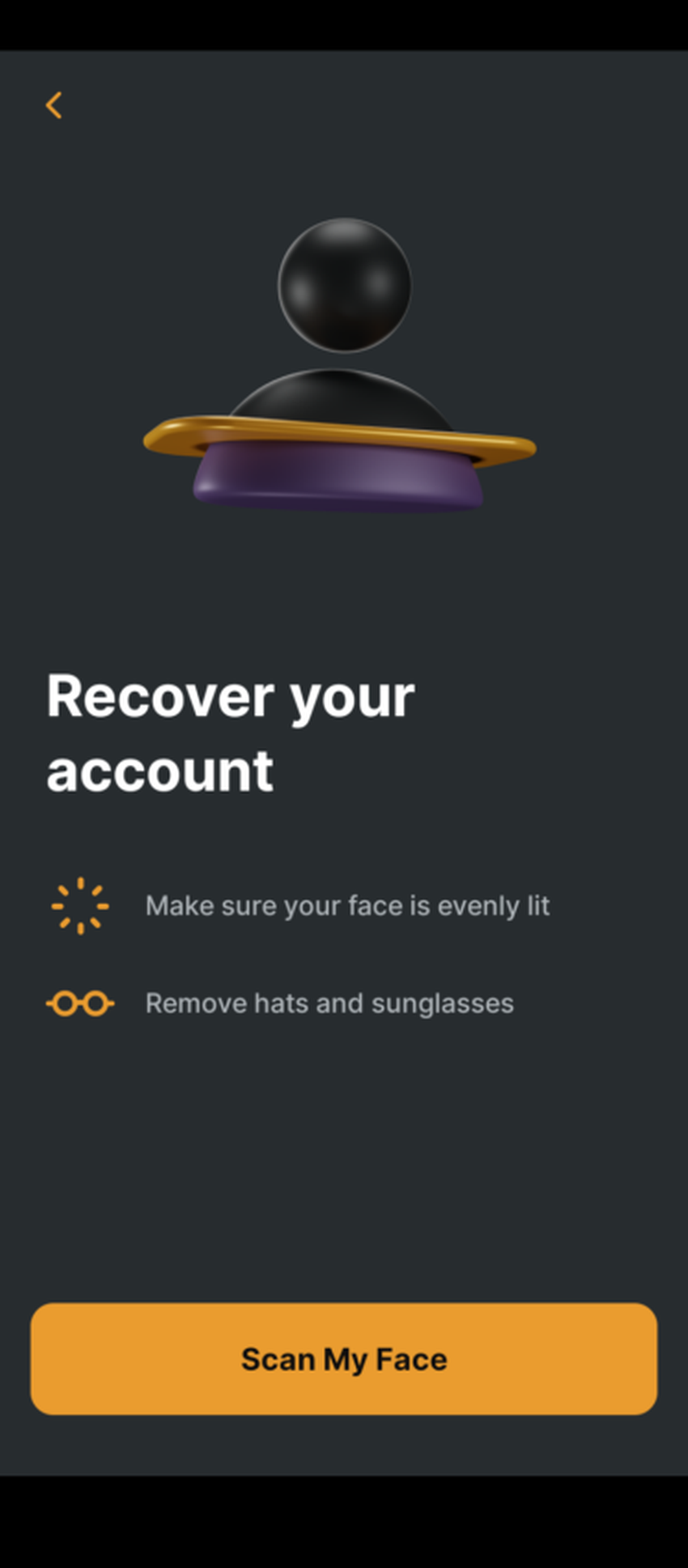 5. Finalmente, você terá que realizar uma verificação facial para concluir a recuperação da conta. A digitalização facial é mantida como uma representação matemática do seu rosto (em vez de uma digitalização facial real) em um arquivo criptografado em um provedor de nuvem.