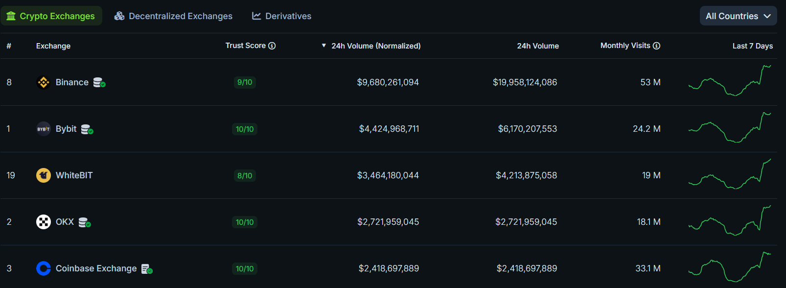 Esse histórico de inovação e expansão fez com que a Coinbase se tornasse uma peça fundamental no ecossistema de criptomoedas não somente nos EUA, mas em todo o mundo. Atualmente, a empresa ocupa a 5º posição em volume diário de negociações, segundo o CoinGecko. Além disso, possui uma pontuação máxima de Trust Score.