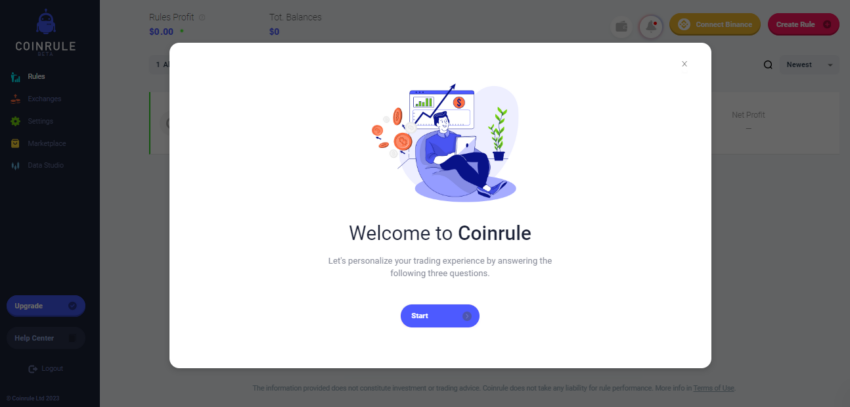 3. Parabéns, você criou uma conta no Coinrule.