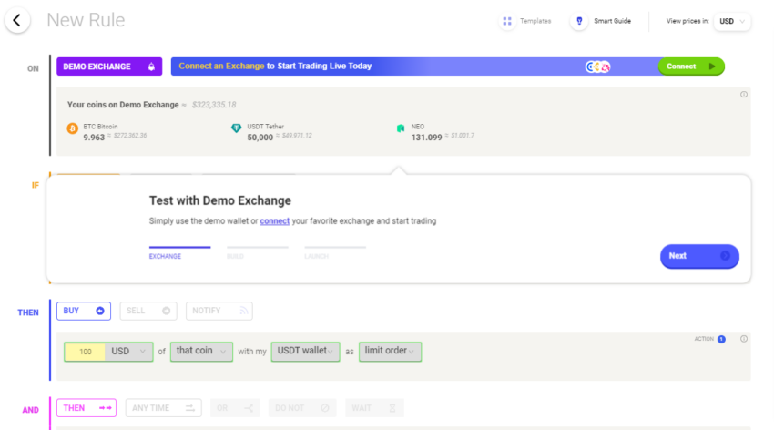 - Modo de demonstração: O Coinrule oferece um modo de demonstração sem riscos para os usuários praticarem suas estratégias.