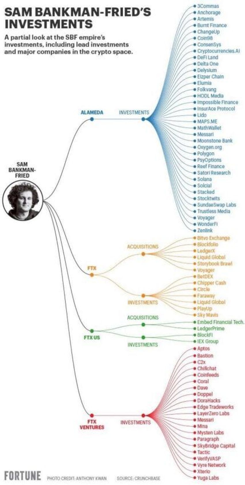 Mas isso não é tudo o que se destacou. A FTX se promoveu bastante. E ainda investiu e adquiriu várias outras empresas durante sua ascendência.