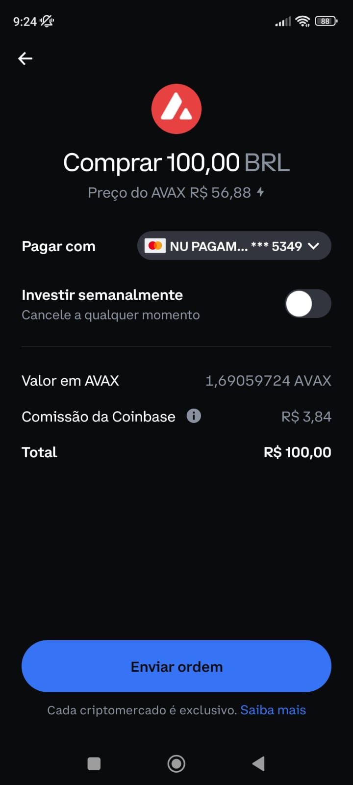 3. Selecione o botão “enviar ordem” para concluir sua compra.