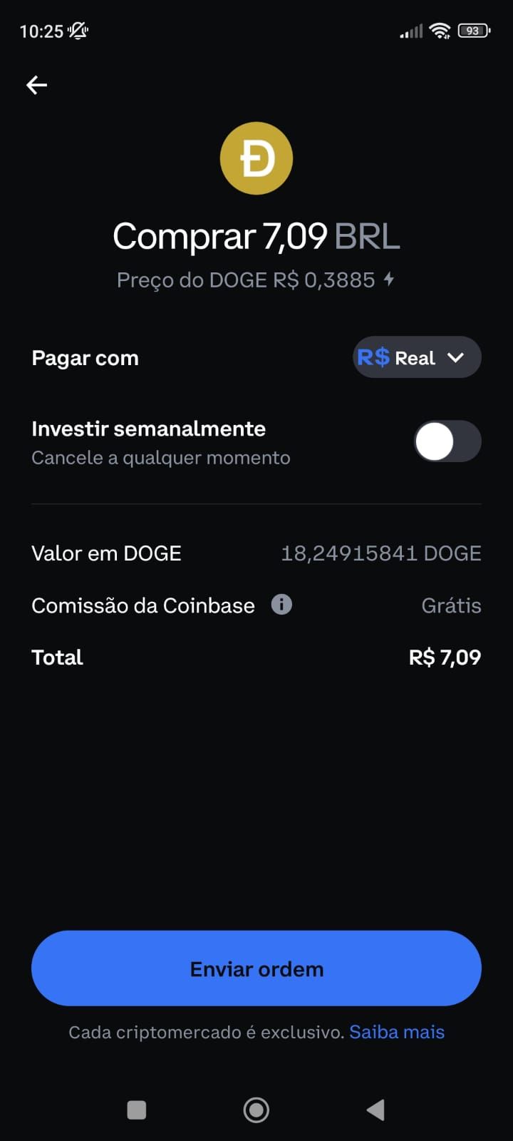Pronto, você acabou de comprar Dogecoin (DOGE) com PIX na Coinbase.