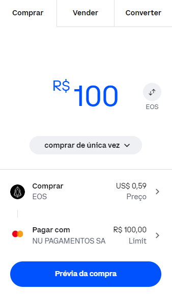 Como comprar EOS com cartão de crédito