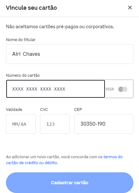 4. Vincule seu cartão de crédito