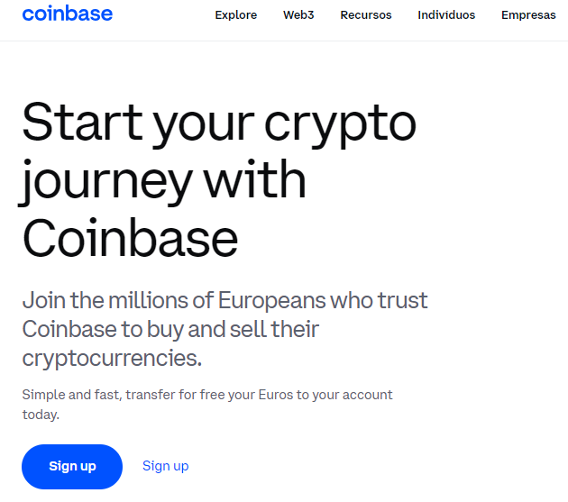 Depois de escolher sua exchange preferida, você abrirá uma conta na plataforma. Isso normalmente envolve visitar seu site e inscrever-se em seus serviços. Certifique-se de configurar uma senha única e forte para proteger sua conta. Neste caso, usaremos a Coinbase para demonstrar o processo.