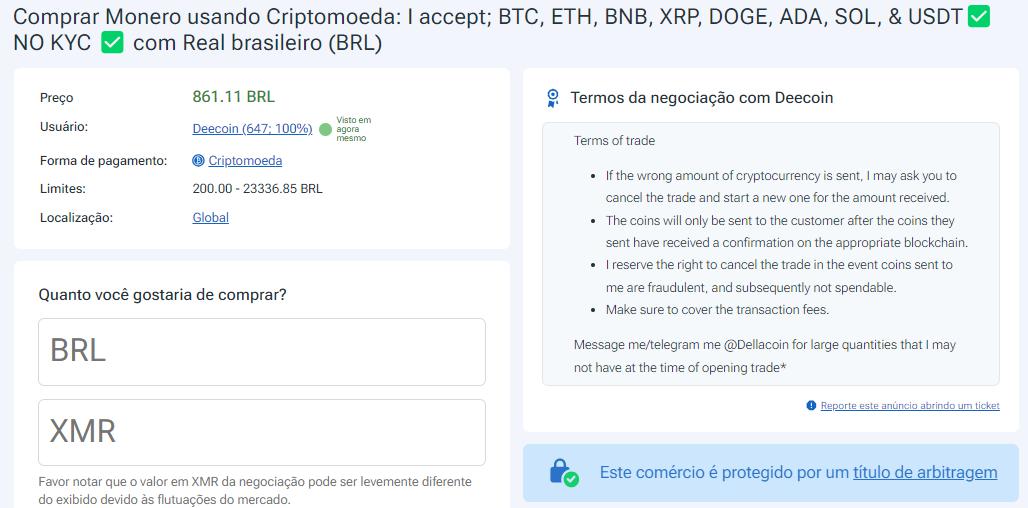 Como comprar Monero anonimamente usando uma exchange P2P