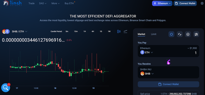 A exchange 1inch declara ser o agregador DEFI mais eficiente, tendo a maior liquidez e as taxas de slippage mais baixas.