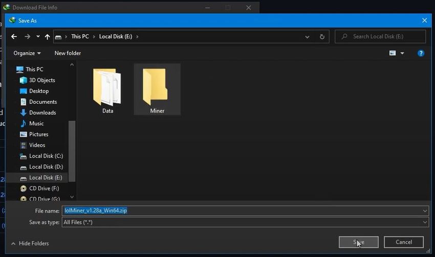 Vá para a pasta onde você baixou o pacote e extraia-o. Vá para lolMiner> 1.28a> miner_grin_32.bat.