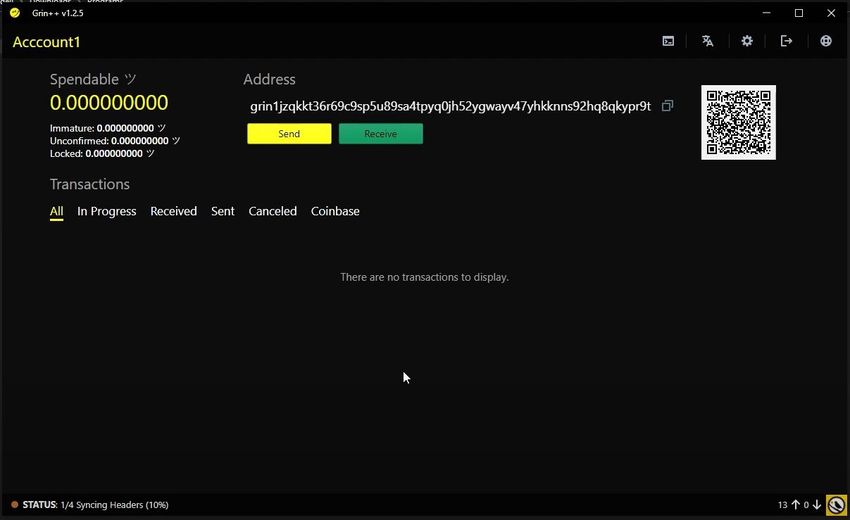 Observe que esta é uma carteira de nó completo e precisa ser sincronizada com a blockchain Grin.