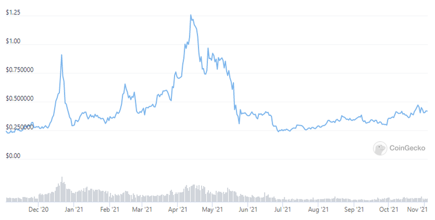 A máximo histórica foi alcançada em 28 de janeiro de 2019, em US $ 10,00. Em contrapartida, a mínima histórica foi alcançado em 8 de novembro de 2020, em US $ 0,2206.