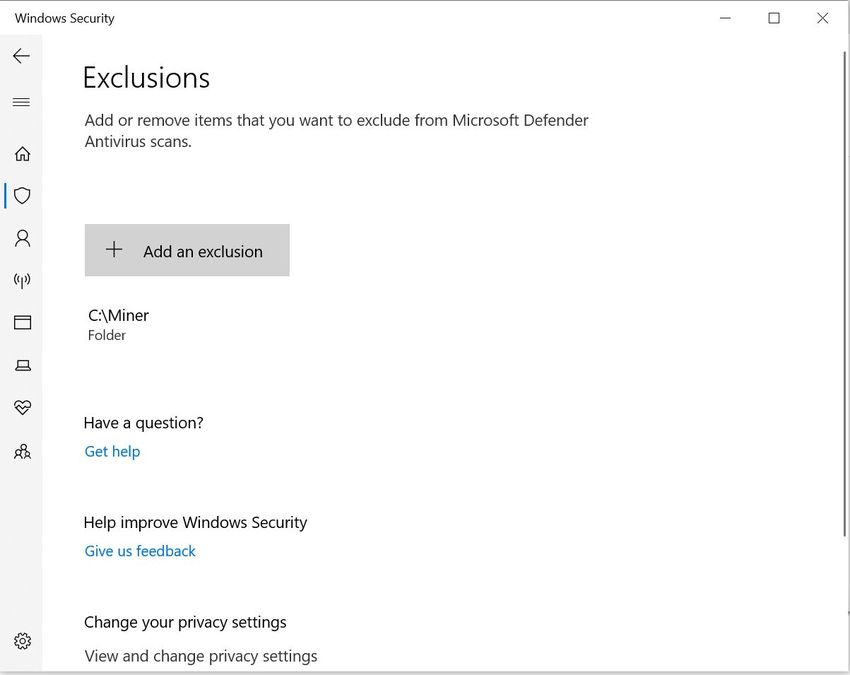 O software de mineração é frequentemente visto como malware pelo software antivírus. É por isso que criar uma exclusão em seu sistema é uma etapa necessária.