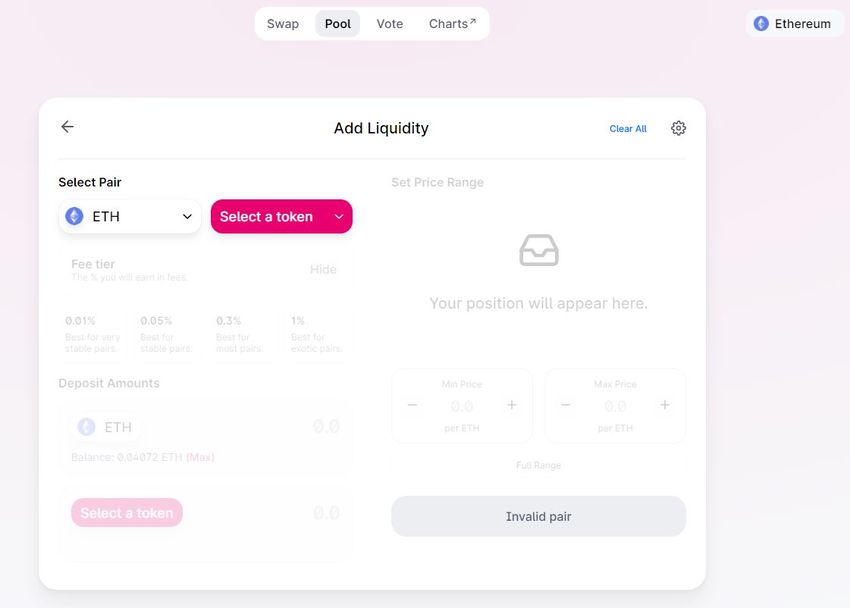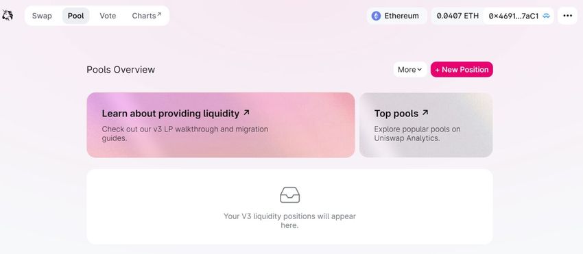 Se você já tem alguma criptomoeda que deseja manter, mas também deseja gerar uma receita passiva usando esses fundos, pode enviar seus fundos para um pool de liquidez na Uniswap. Observe que você precisará fornecer um par de dois tokens.