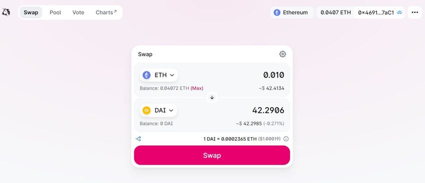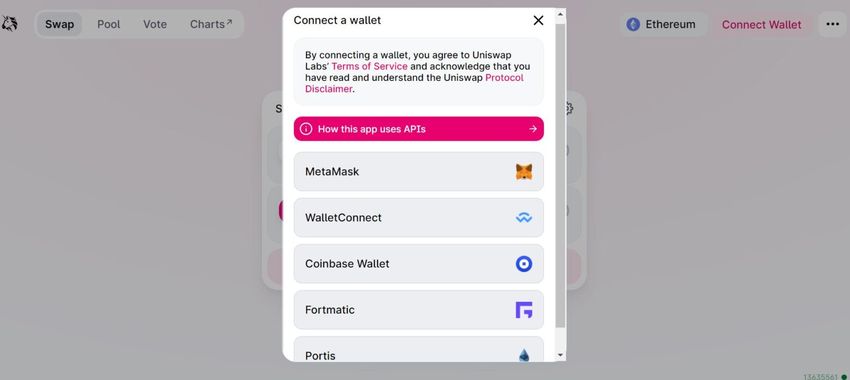 Depois de conectar sua carteira à Uniswap, você pode começar a trocar tokens na plataforma.