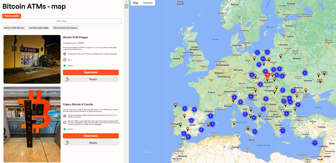 Encontre um caixa eletrônico: use o CoinATMRadar ou o site Bitomat para encontrar um caixa eletrônico de Bitcoin perto de você.