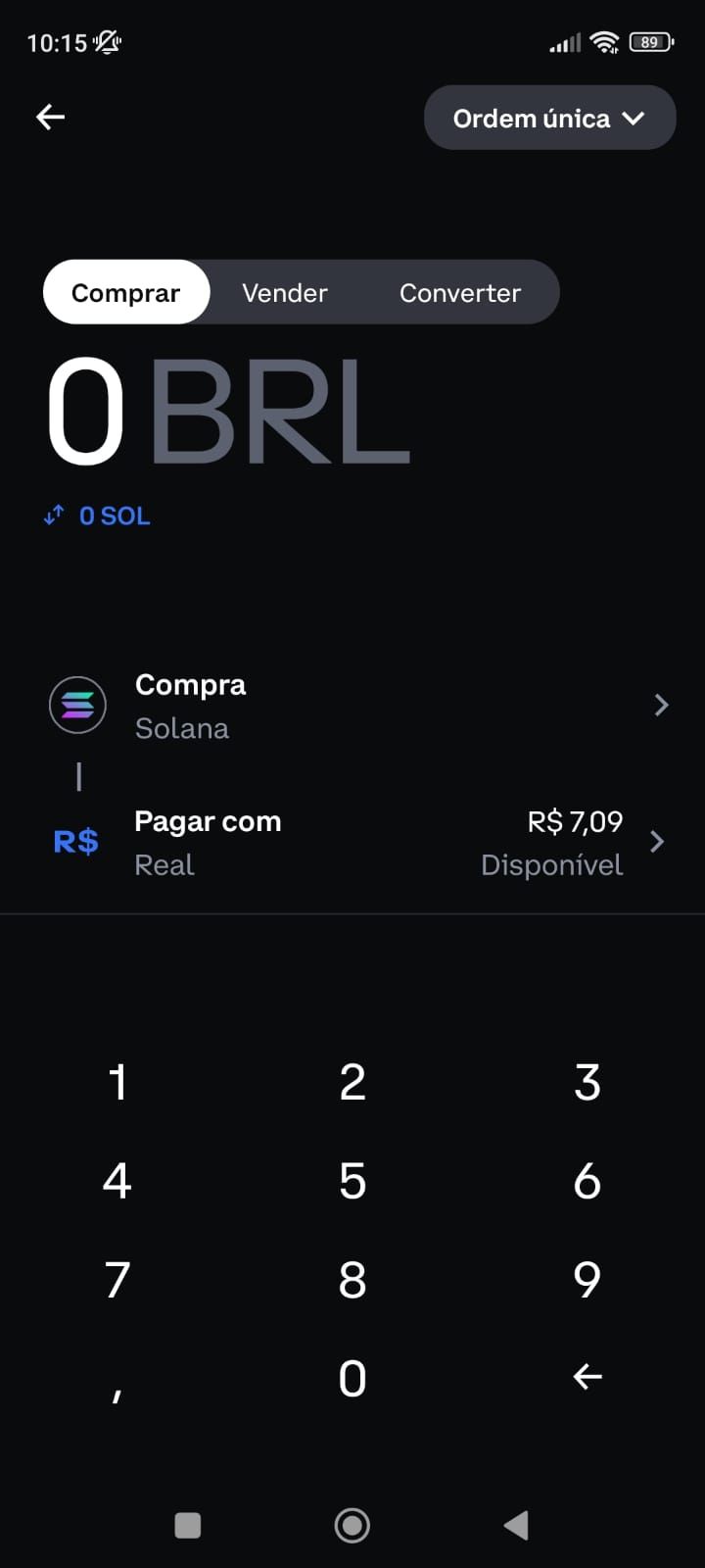 Insira o valor em reais de quanto você quer comprar SOL e clique em “pagar com real”.
