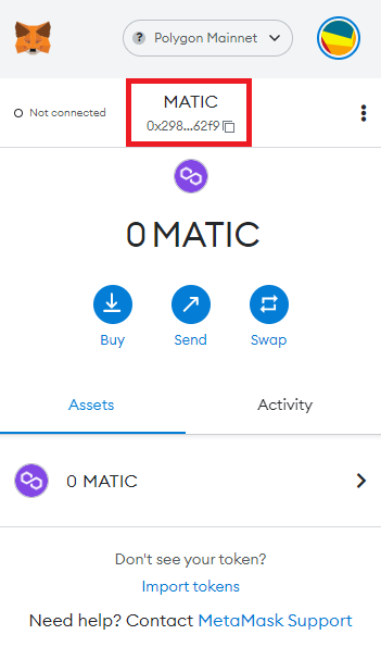 Para transferir os tokens MATIC para a carteira de criptomoedas MetaMask você precisa copiar o endereço da carteira.