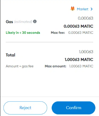 4º passo – A plataforma vai te mostrar a taxa de gás estimada para realizar a transação no bloco. Se você concordar com o valor da taxa é só clicar no botão “Confirmar” para executar a transferência. Caso contrário, você pode clicar no botão “rejeitar” para cancelar a transação.