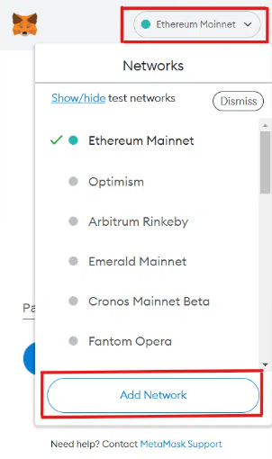Para adicionar a rede Polygon na MetaMask, você precisa clicar na extensão do navegador e depois clicar no menu suspenso. Clique em “Add Networks”.