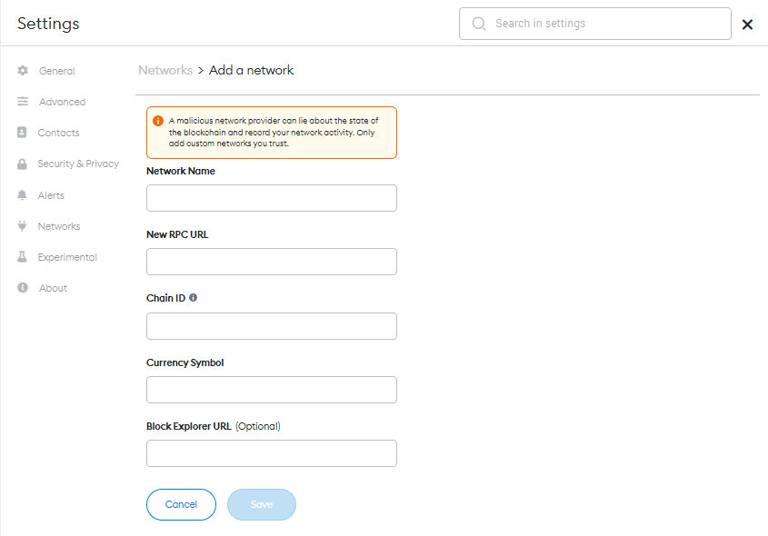 O mesmo processo pode ser utilizado para adicionar outros tipos de rede, a única diferença são os dados da blockchain.