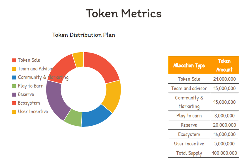 ALICE tem um estoque total de 100 milhões de tokens. 20 milhões desses tokens ALICE são mantidos na reserva, enquanto 21 milhões foram para a venda inicial de tokens do projeto. Além disso, 15 milhões de tokens são alocados para a equipe de desenvolvimento e consultores, e outros 16 milhões são reservados para o ecossistema do jogo.