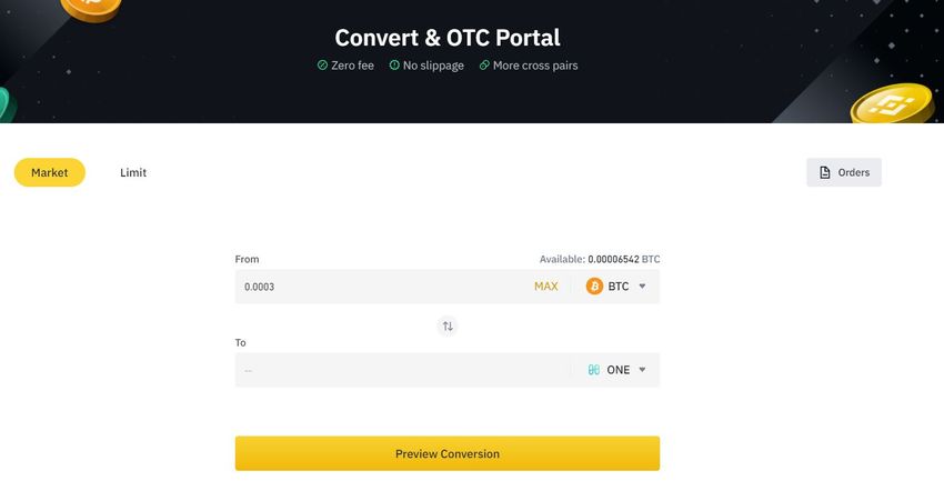 Depois que estiver tudo pronto, clique em Visualizar conversão para obter a quantidade exata de tokens ONE que você receberá em troca do BTC. Clique em Converter quando estiver pronto para converter e comprar tokens Harmony ONE.