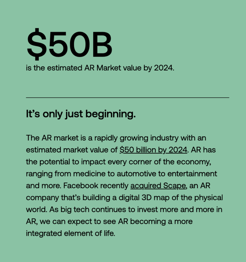 Essa tecnologia imersiva trata de sobrepor uma entidade digital no ambiente do mundo real. Com o AR, você pode fazer alterações no mundo à sua frente, adicionando super-heróis ou outros elementos a ele.