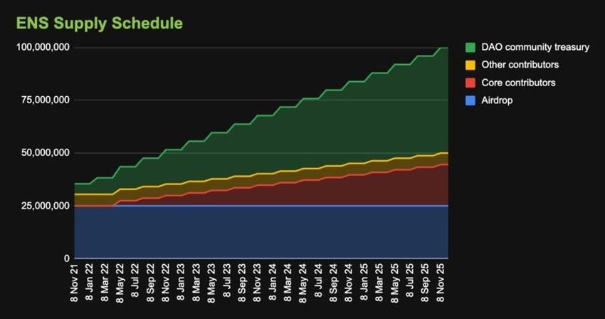 - Todos os tokens ENS estarão circulando até dezembro de 2025.