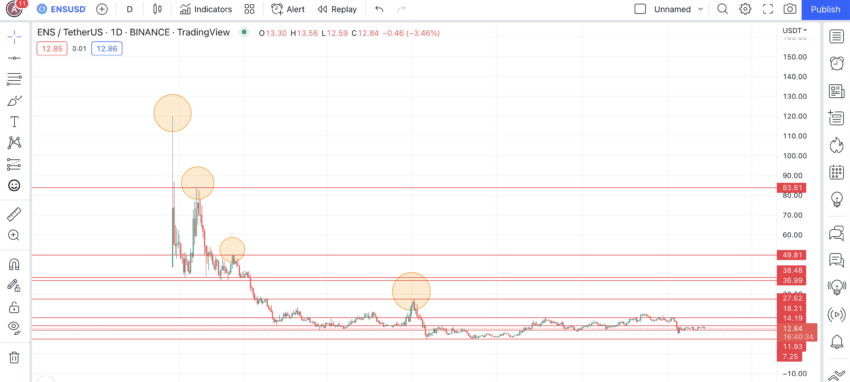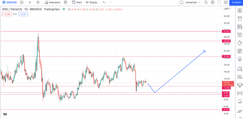 Por enquanto, a modelagem de previsão de preço do Ethereum Name Service depende muito dos fundamentos, desempenho do projeto e análise técnica. O token só surgiu em 2021, portanto, a análise técnica pode carecer de anos de precisão. Ainda assim, não é um ponto de referência ruim para começar a considerar o token ENS.