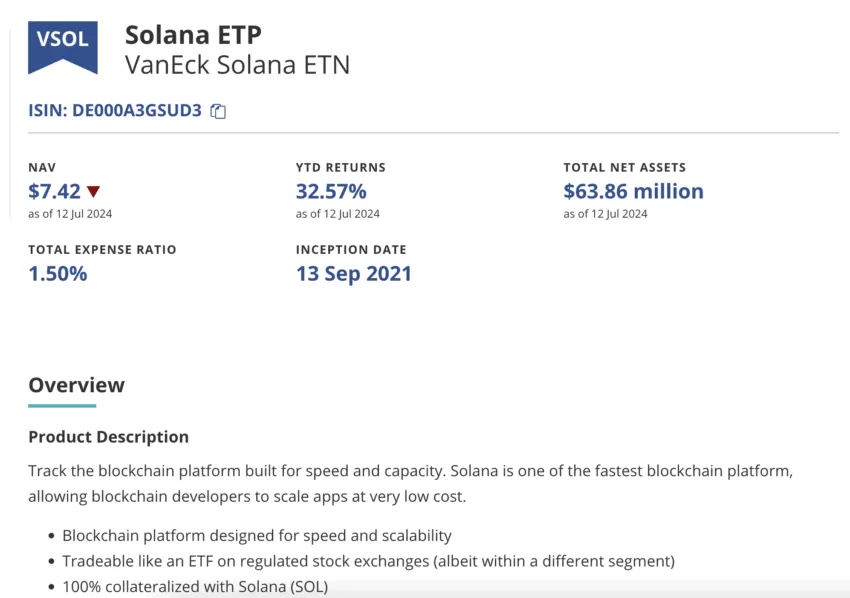 - ETN: VanEck Solana ETN (VSOL)