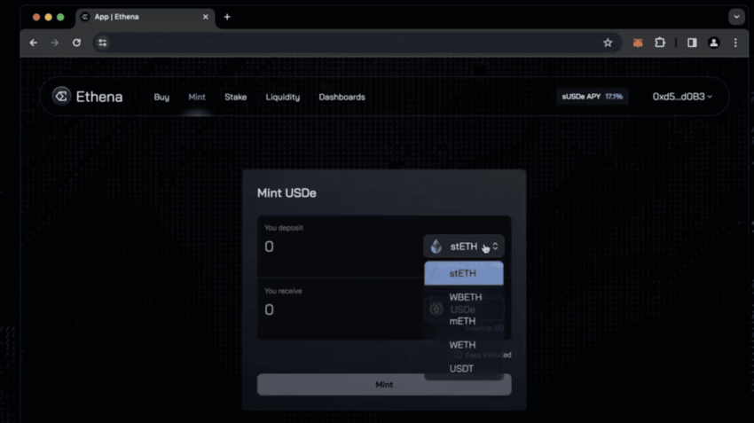 - Como cunhar USDe no protocolo Ethena?