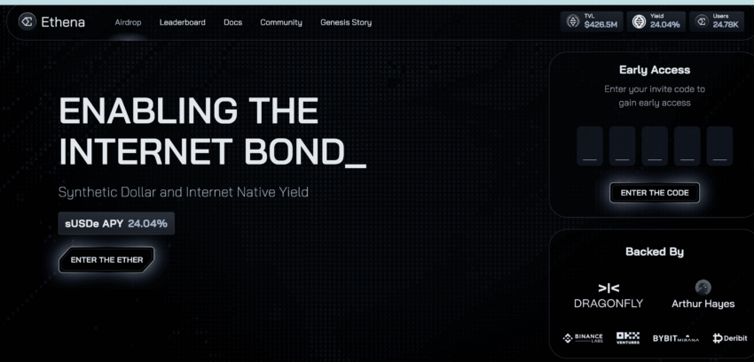 - Acesse Ethena.fi e entre usando o código de referência (Você pode usar o código de convite do BeInCrypto para ingressar: y1rj8).