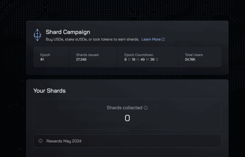Antes de tudo, é importante destacar que os fragmentos de Ethena não estão relacionados ao conceito de “Sharding” para melhorar a escalabilidade da blockchain. Na verdade, eles fazem parte da Campanha Shard de Ethena, que busca estimular o engajamento e a participação da comunidade. Podemos considerá-la como um programa de recompensas por realizar atividades dentro do protocolo Ethena.