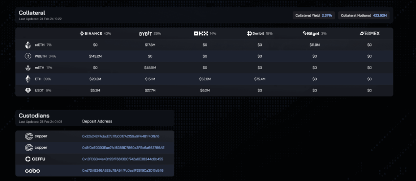 Observação: Ethena abre uma posição curta de ETH 1:1 com a garantia depositada. Não há alavancagem envolvida, o que adiciona outra camada de credibilidade.