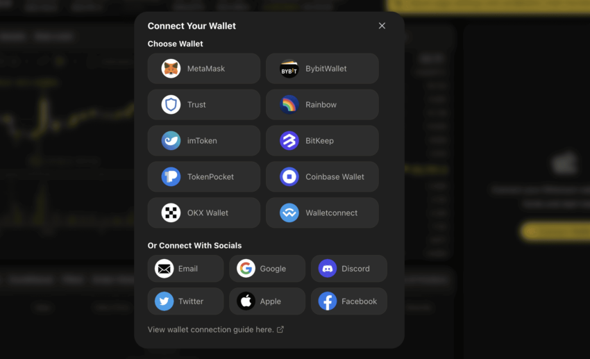 Observe que apesar de ser uma plataforma sem permissão com várias integrações de carteira em jogo, a ApeX Pro permite que você acesse os recursos conectando contas sociais como Facebook, Discord e muito mais.