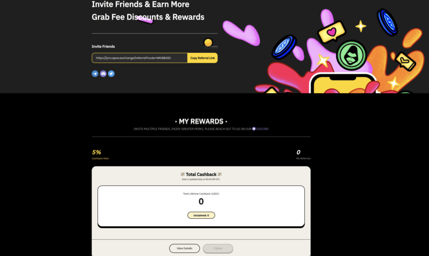 Além disso, se você não estiver interessado em passar por esses processos, uma maneira simples de ampliar suas chances de ganhar é por meio de afiliados. Você pode simplesmente fazer com que seus amigos se inscrevam no ApeX Pro usando seu link de indicação, ao mesmo tempo em que ganha cashback no processo.