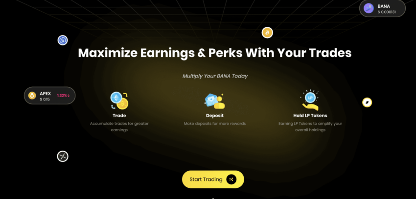 A exploração do painel do ApeX Pro revela o Trade-to-Feature, onde os tokens BANA são creditados aos usuários por realizarem negociações bem-sucedidas. Esse recurso leva os ganhos baseados em ApeX além dos lucros básicos de negociação com contrato perpétuo.
