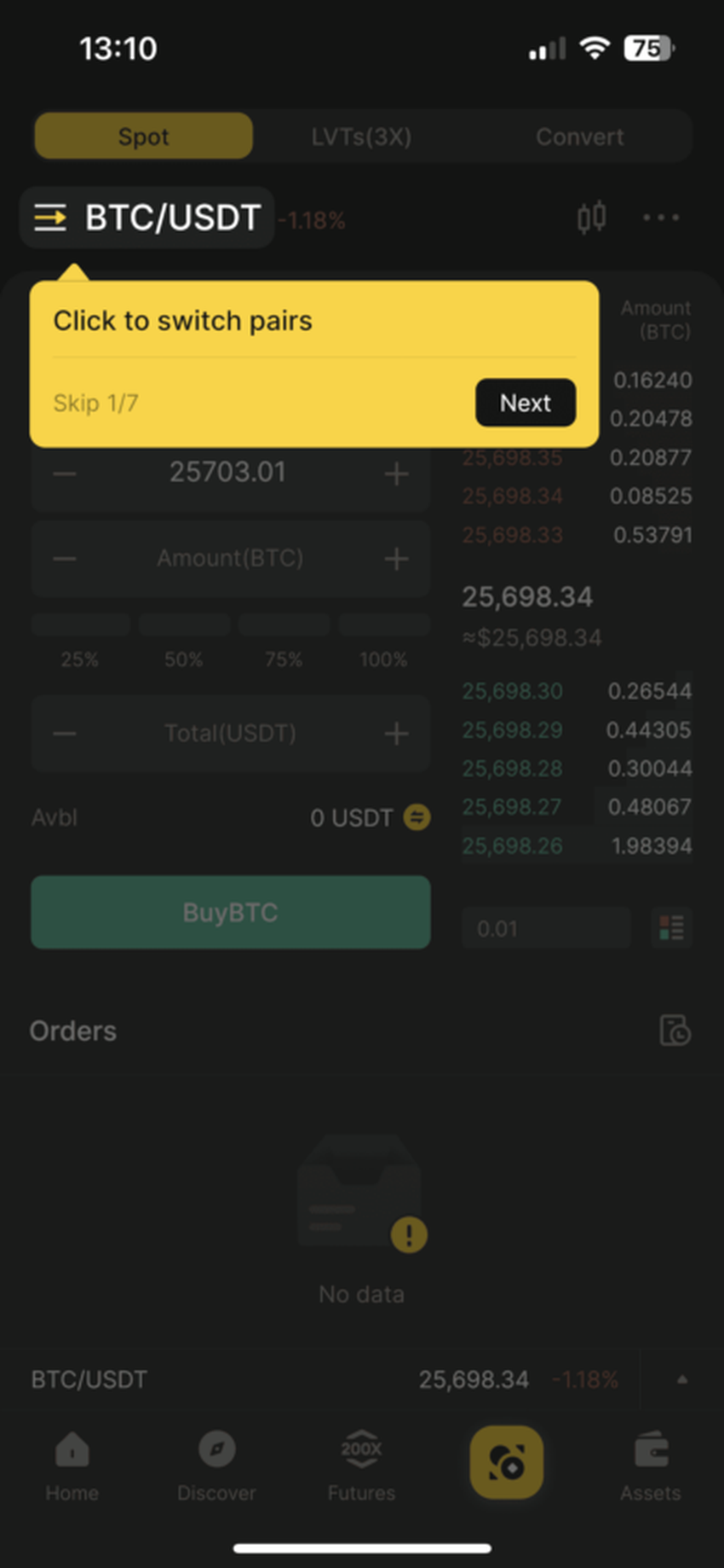 Todo iniciante em criptomoedas começa, ou pelo menos deveria começar, com a negociação à vista. Isso envolve comprar um token específico a um preço determinado e vendê-lo a um preço diferente, preferencialmente mais alto. A BYDFi oferece esse recurso, mas o divide em três níveis.