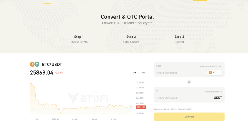 Lembra-se da funcionalidade “Converter” que discutimos em relação ao recurso de negociação à vista? A BYDFi cobra algo entre 0,1% a 0,15% para essas conversões de criptomoedas para USDT.