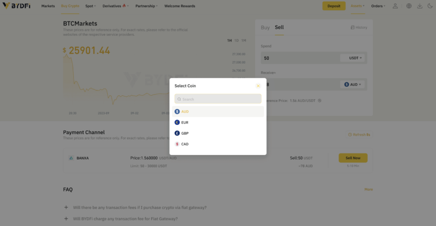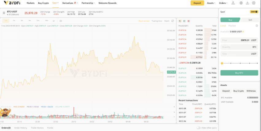Uma vez dentro da BYDFi, você pode iniciar a negociação de criptomoeda imediatamente, migrando ou depositando sua criptomoeda na rede. Não há exigência de conclusão da verificação KYC nesta fase; você deve pagar apenas as taxas de transação específicas da rede.