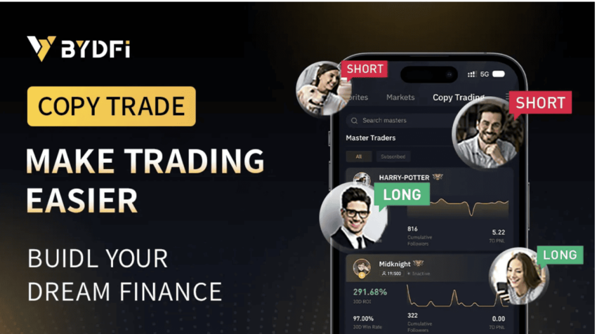 Aqui está um recurso exclusivo da BYDFi – um recurso que permite que traders novatos espelhem as negociações iniciadas por pessoas mais experientes. Os traders que são copiados também ganham quando utilizadores utilizam seus tradings.