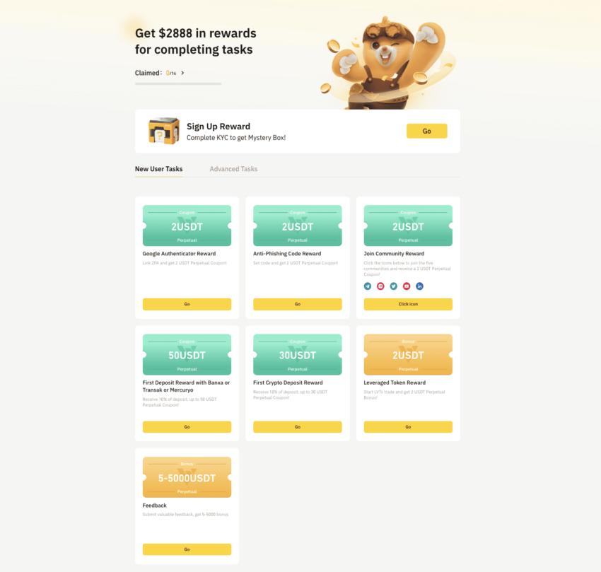 Por fim, a BYDFi também possui uma configuração de “recompensas” imersiva, permitindo aos usuários ganhar tokens USDT não sacáveis, mas resgatáveis, para completar tarefas específicas. Isso inclui ingressar na comunidade, fazer um depósito inicial de criptomoedas, negociar um token alavancado e muito mais. Observe que essas recompensas do USDT só podem ser usadas para contratos perpétuos.