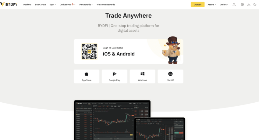 Quanto às plataformas de negociação e interface, a BYDFi permite negociar em iOS, MacOS, Windows e até mesmo nos ecossistemas Android, cortesia de recursos dedicados à plataforma. Os aplicativos móveis para Android e iOS são interativos o suficiente e mostram insights de negociação em tempo real, semelhantes à interface da web.
