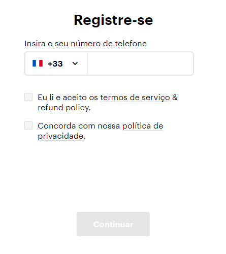 Você será solicitado a inserir seu número de celular. A ideia é escolher corretamente o código do país e esperar que a Paybis envie uma mensagem com um código de verificação específico para celular.