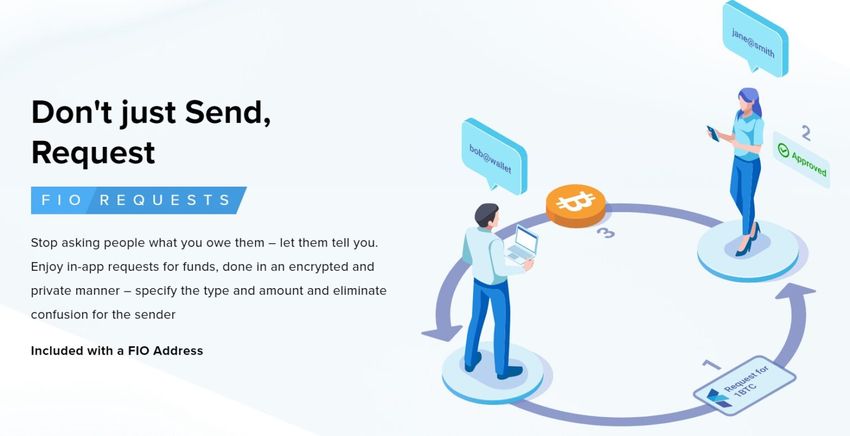 Tradicionalmente, a tecnologia blockchain permite apenas que os usuários enviem fundos. Mas o protocolo FIO tem uma função incorporada que permite aos usuários criar solicitações de fundos dentro do aplicativo criptografadas, nas quais o tipo e a quantidade de criptomoeda podem ser especificados.