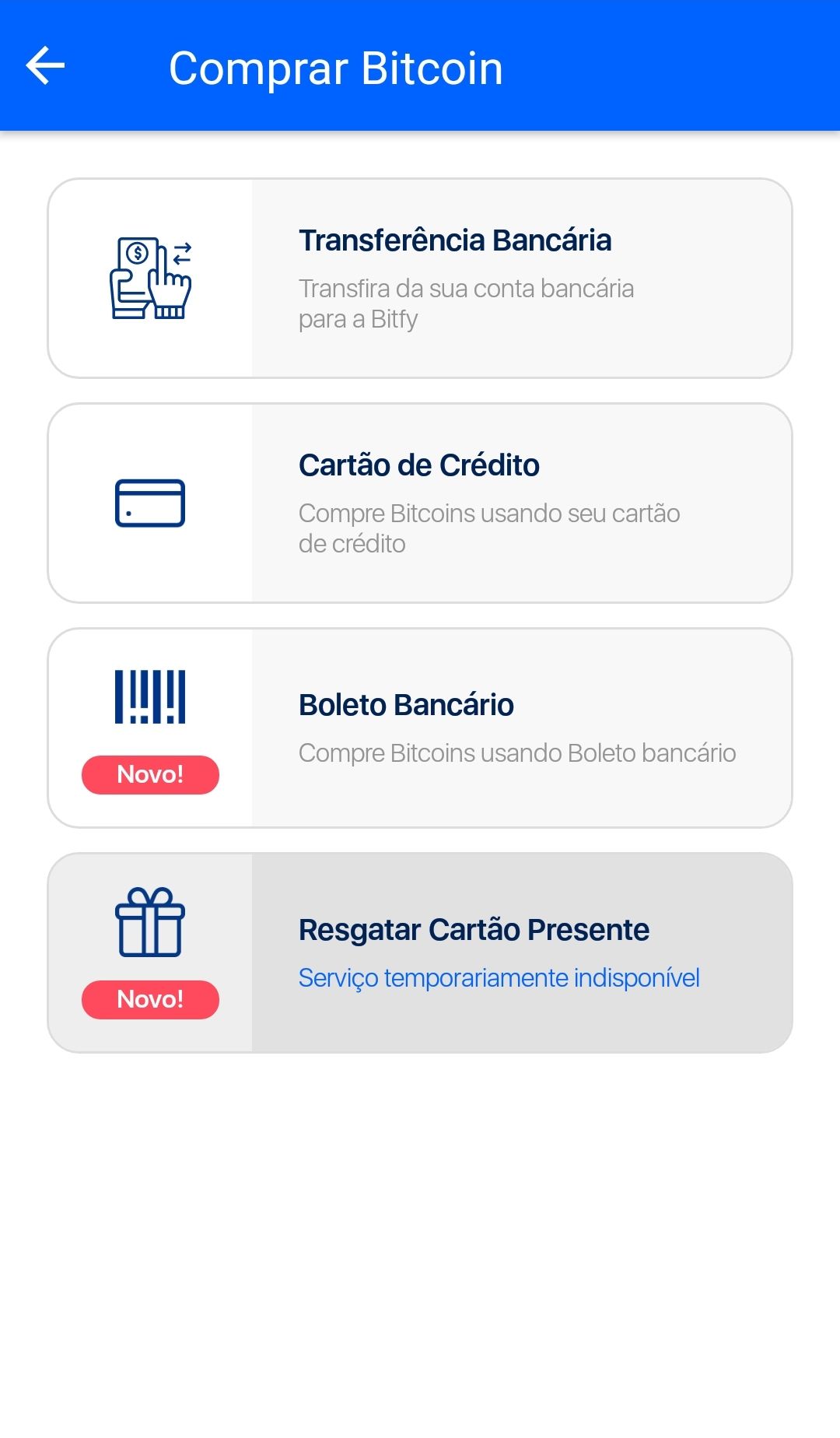 Agora que a sua conta já está verificada, você tem acesso a todas as funcionalidades do aplicativo da Bitfy. Portanto, você já pode começar a comprar bitcoins por meio de boleto bancário.